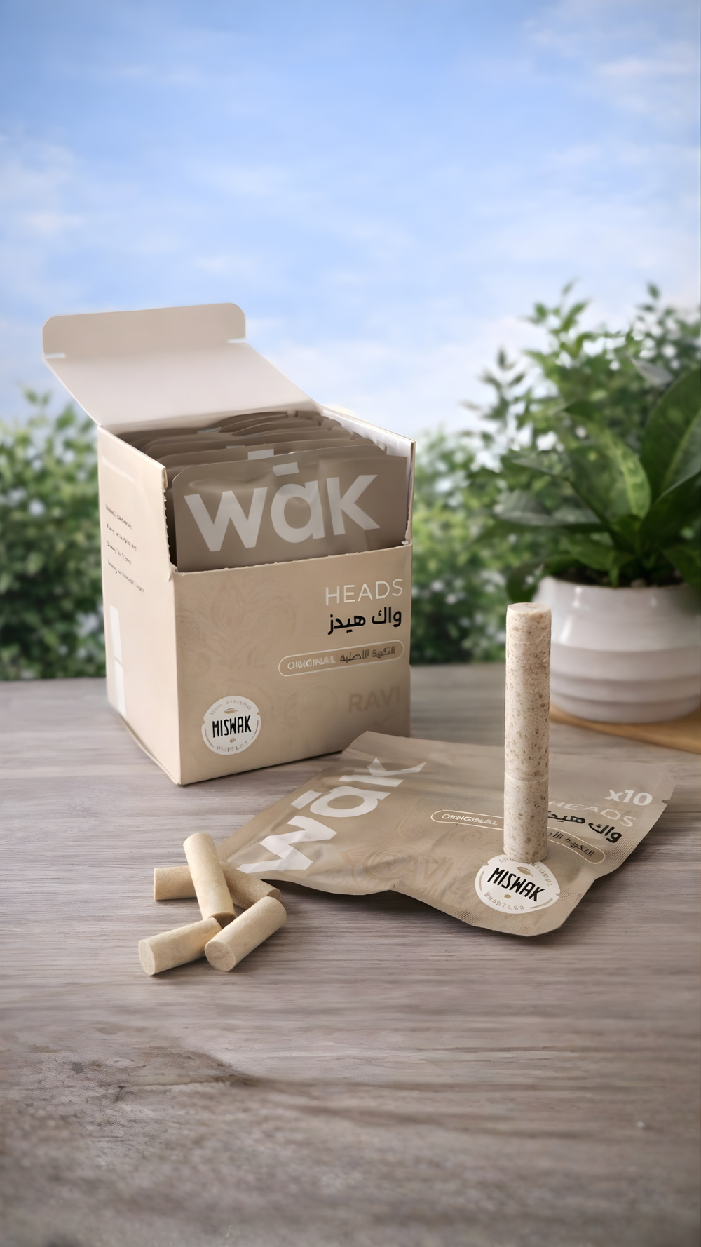 عصا واك + 5 أكياس تحتوي على 10 رؤوس واك وعصا قابلة للتحلل الحيوي